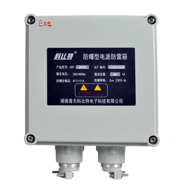 防爆型江南网页版_江南(中国)官方的箱体是采用符合GB3836.3-2010《爆炸性环境 第3部分:由增安型“e”保护的设备》标准要求的防爆箱,防爆标志是:Ex eⅡ T6 Gb/DIP A21 TA T6。防爆箱内部安装的是按照GB18802.1-2011《低压电涌保护器(SPD) 第1部分 低压配电系统的保护器性能要求和试验方法》标准要求生产的电源防雷模块,并内置了断路器,其中KBT-AD系列配置的电源防雷模块为I级试验(T1)电涌保护器,用于第一级雷电防护,KBT-BD和KBT-CD系列配置的电源防雷模块为II级试验(T2)电涌保护器,分别用于第二级和第三级雷电防护。适合各种电网制式的电源系统,防止雷击产生的脉冲浪涌及瞬间过电压对用电设备造成损害。