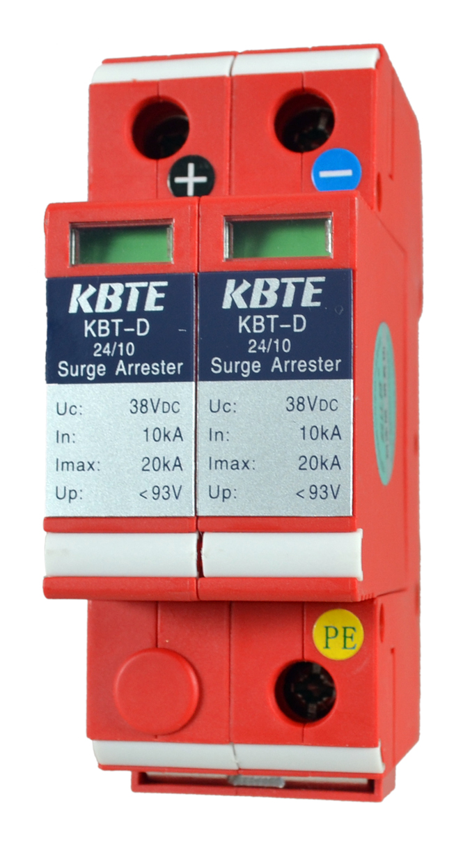 KBT-D系列直流电源防雷模块为分体式结构,可插拔,带劣化指示窗口。用于直流电源第三级防护,标准35mm导轨安装。采用并联安装方式,不影响电源线路的正常工作。